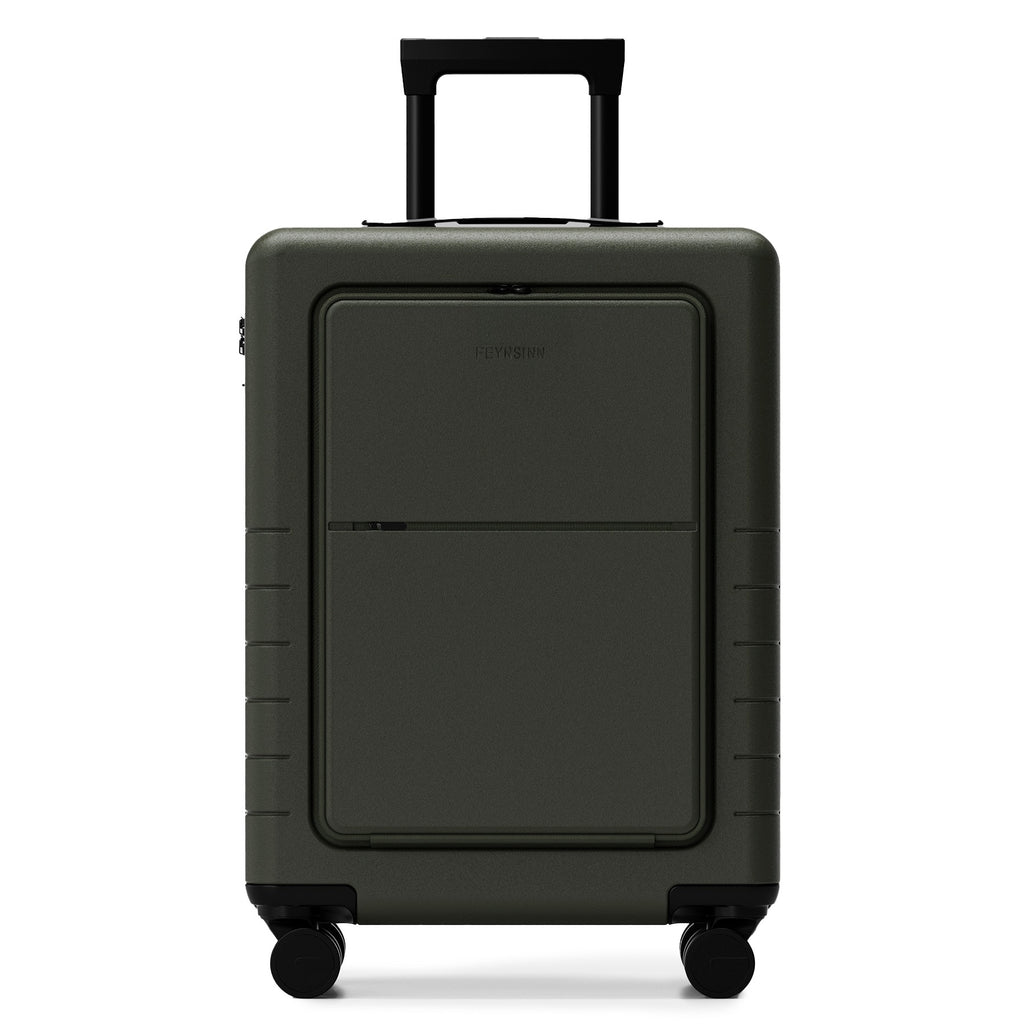 FEYNSINN Handgepäck-Koffer RYKER mit Frontfach schwarz beige olive Reisekoffer Kabinen-Trolley Hartschale 4 Rollen